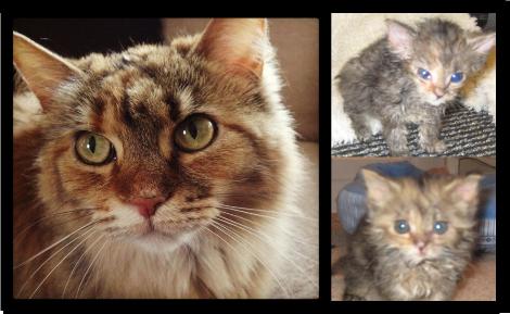 | Peanut is a 5 year old Somali/Domestic Long Hair cat that was rescued as a small kitten (upper right photo). She was extremely malnourished weighed only 0.2 pounds! In a matter of one week, she began to gain weight and thrive (lower right photo). After being treated for ringworm, her fur became beautiful and she has grown up to be a beautiful, extremely loving and loyal cat. In the last 1 ½ years, Peanut has developed wheezing and has shown signs of respiratory distress. She underwent a rhinoscopy last July, which revealed she has severe nasopharyngeal stenosis (narrowing of the nasal section of the pharynx). Despite aggressive antibiotic and steroid treatment, her condition continues to decline. The treatment for this rare condition in cats is nasopharyngeal stenting. This procedure will be done by a cardiologist at the Ohio State Veterinary College. The expected procedure costs, with follow up care is estimated at $4,000. If you wish to make a donation towards Peanuts’ medical fund, please click |